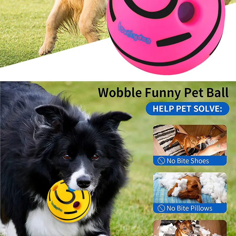 GREAT FOR INDOOR & OUTDOOR PLAY Whether your dog likes to play in the park or in your home Wobble Wag Giggle interactive dog toy is guaranteed fun! Watch as your pup leaps & bounds when they hear these playful sounds! This interactive toy is meant to keep your dog entertained and active.