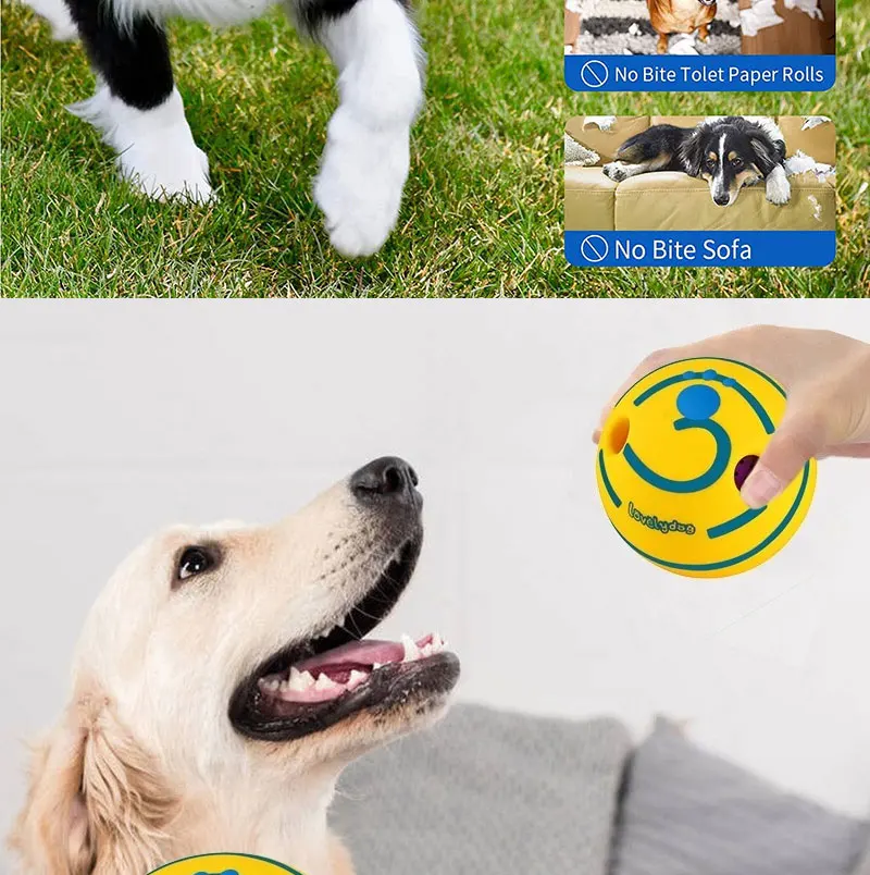 HAPPY, HEALTHY & FIT! By engaging our dog's natural curiosity and instinct to play with giggling sounds when rolled or shaken, this toy keeps your pup active and entertained throughout the day providing great exercise for your best friend!
