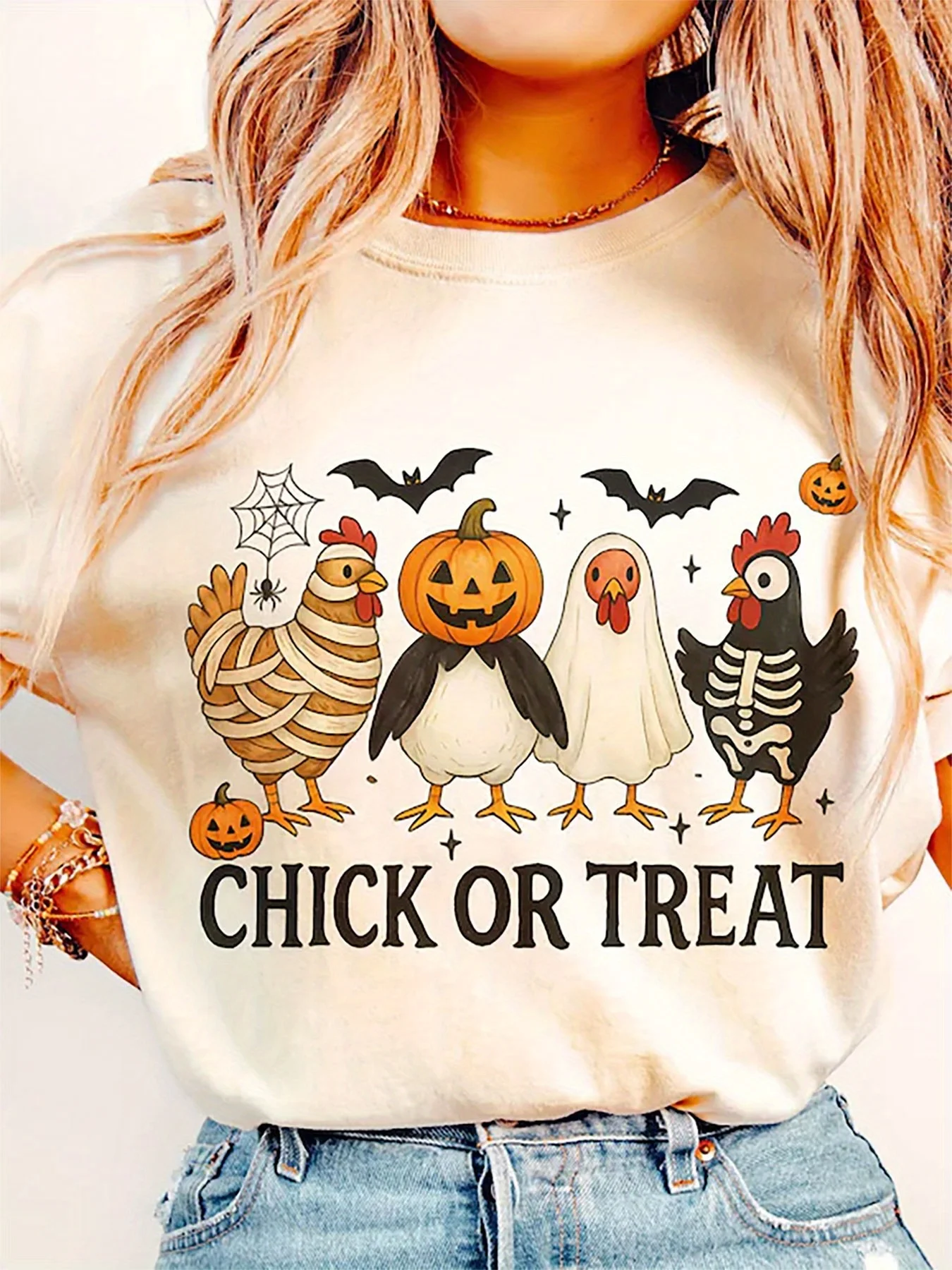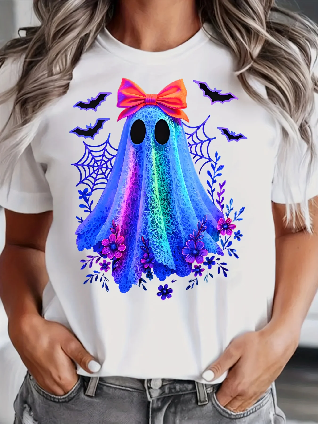 Short-Sleeved Pure Cotton T-Shirt Suitable For Ladies Casual Ghost Print